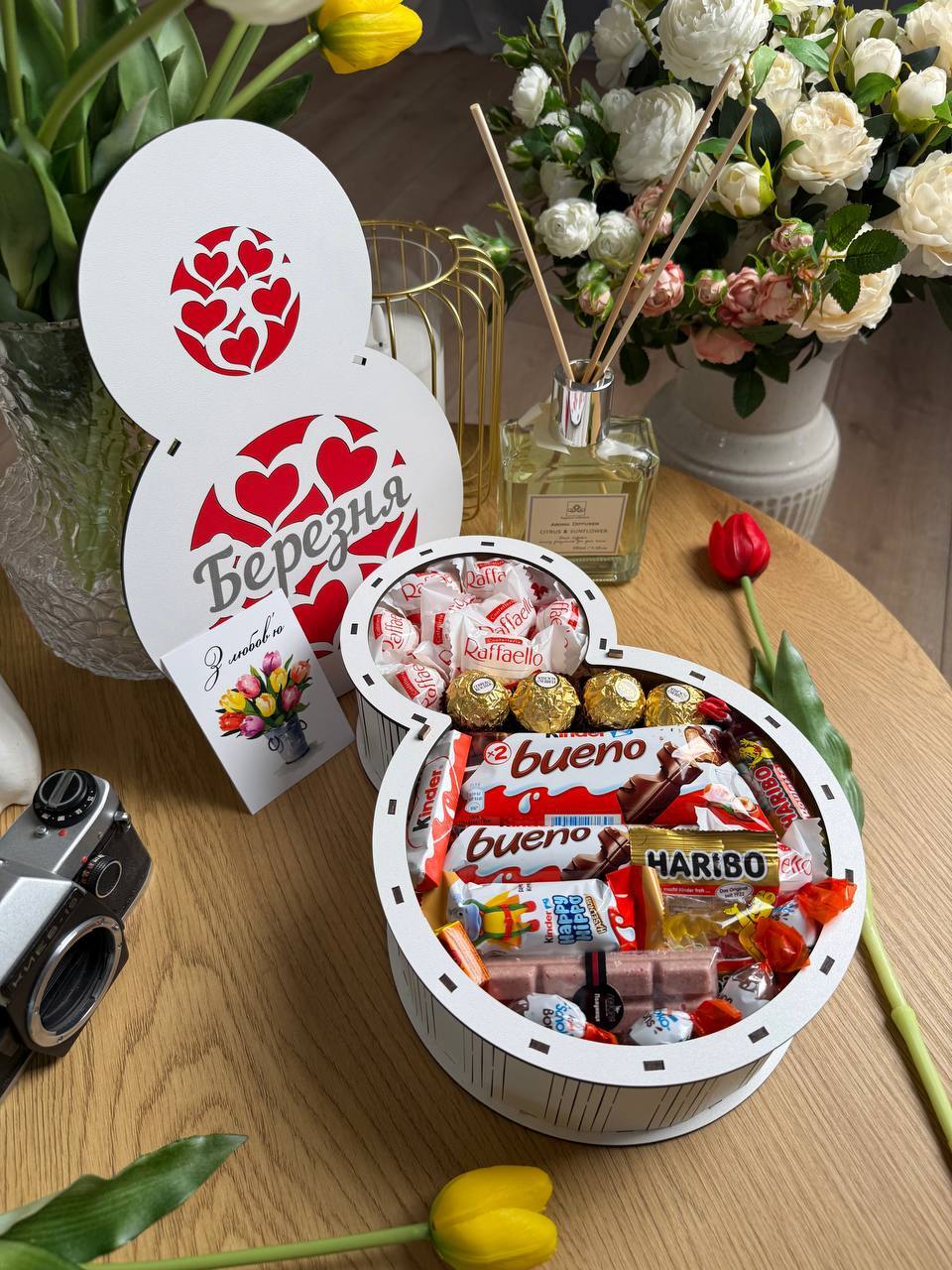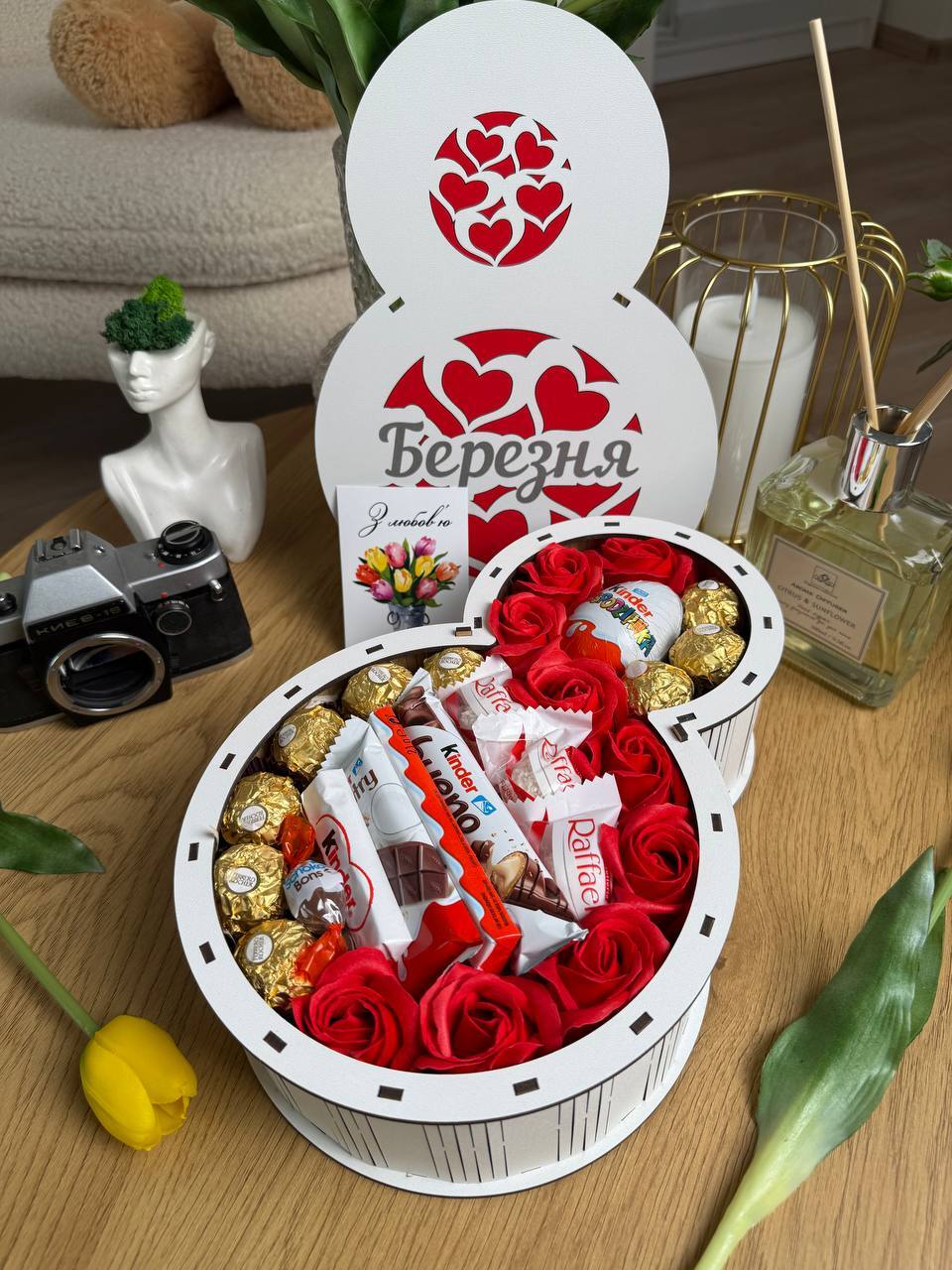 🍫деревʼяна коробка у вигляд серця в серці ♥️