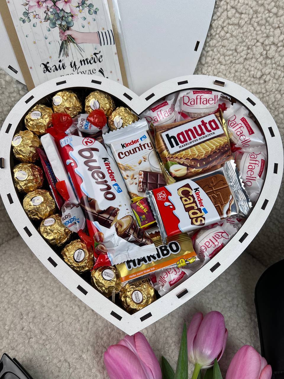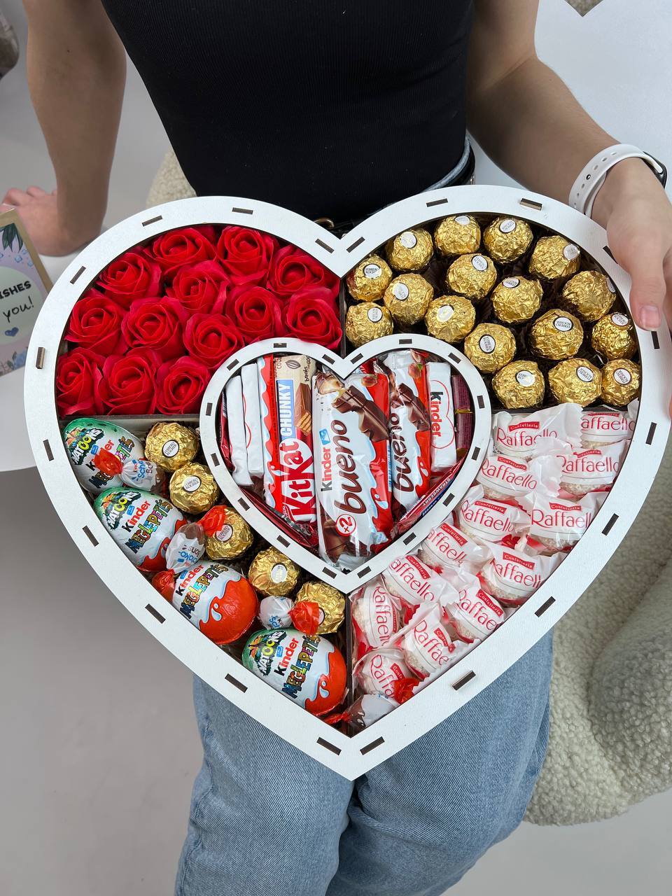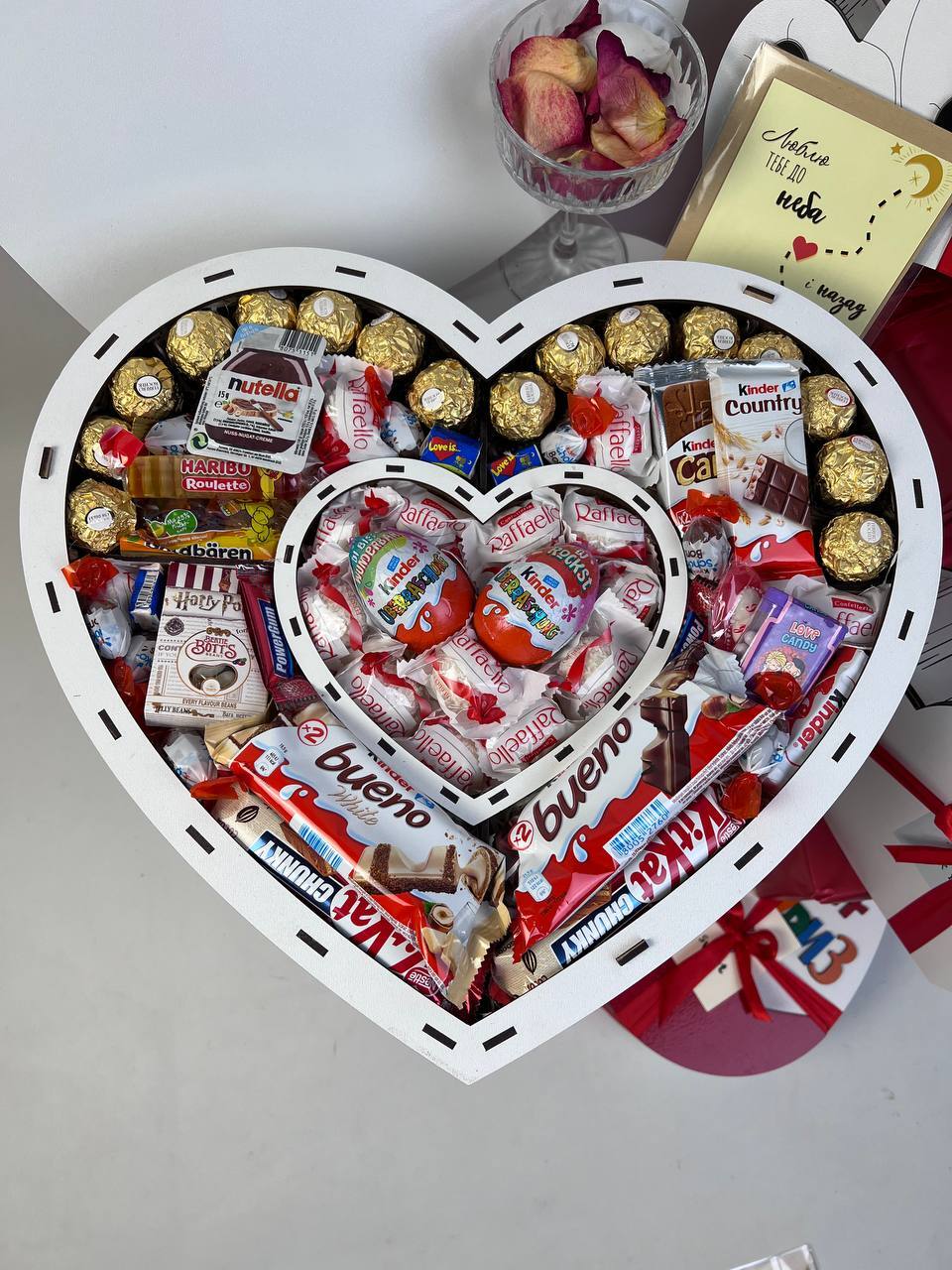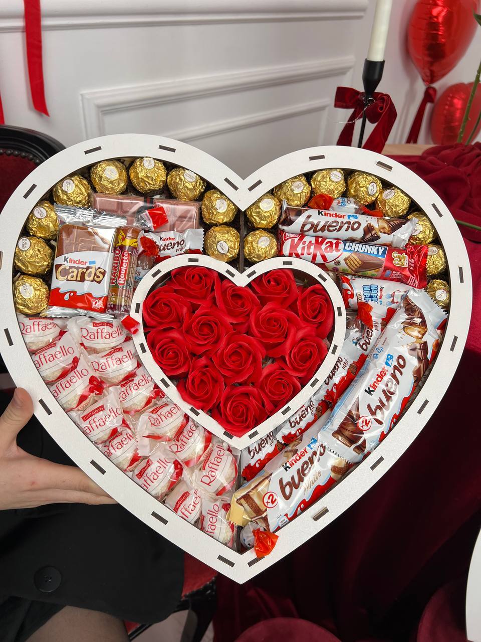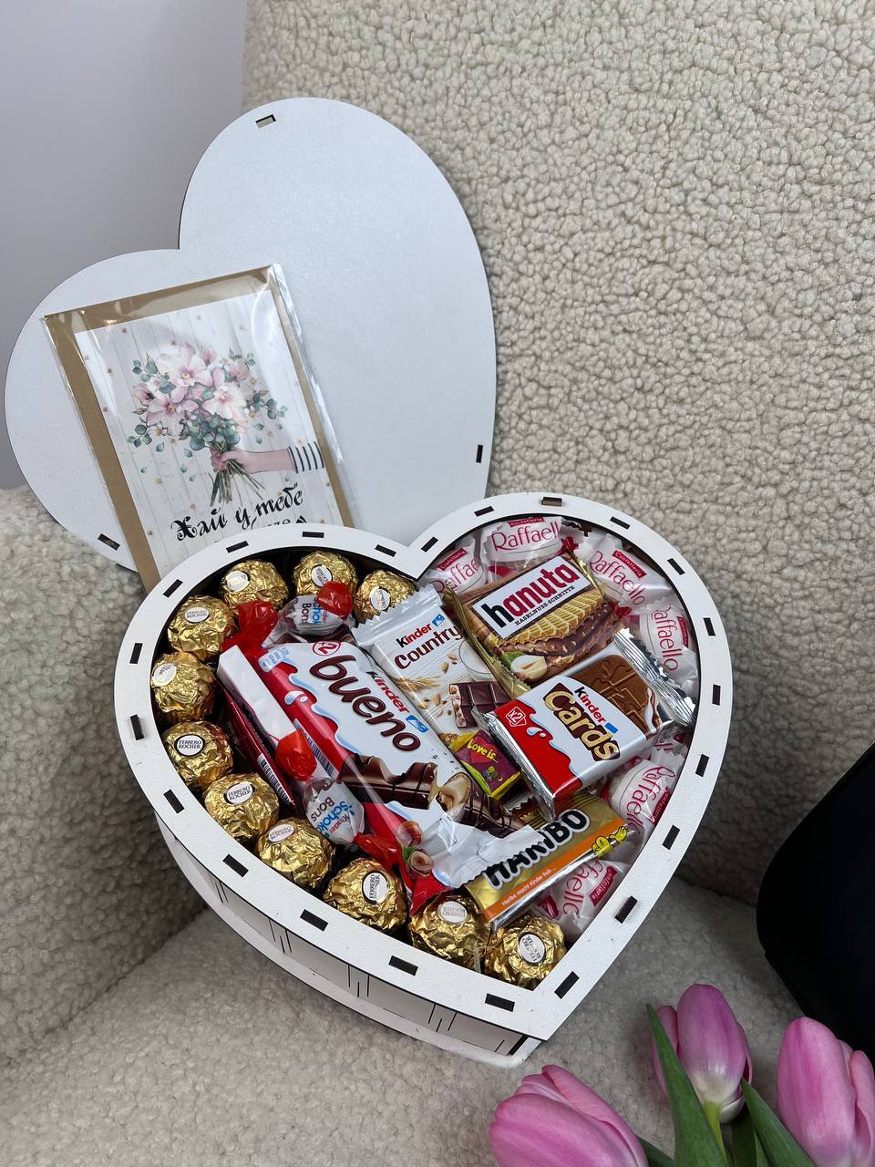 🍫деревʼяна коробка у вигляд серця в серці ♥️